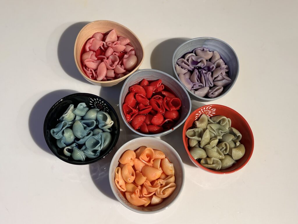 All in all, I found this topic really interesting and decided to do my chemistry short paper project on natural dyes. I expiremented with various sources. After my expirementation, I decided to dye pasta to make the experience of the kids more fun while eating. Iwill insert some pictures down below.